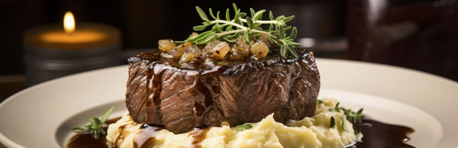 (rolovani file premazan kremom od vrganja i luka, sa njeguškim pršutom i aromatizovanim krompirom)